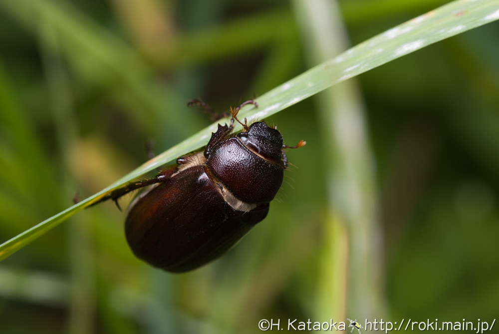林縁や草地で普通に見られる中型のコガネムシ。夜行性で、草本・木本問わず、様々な植物の葉を食べる。夜間、灯りにも飛来する。よく似た種に、クロコガネやオオクロコガネ等がいるので、同定には注意を要する。