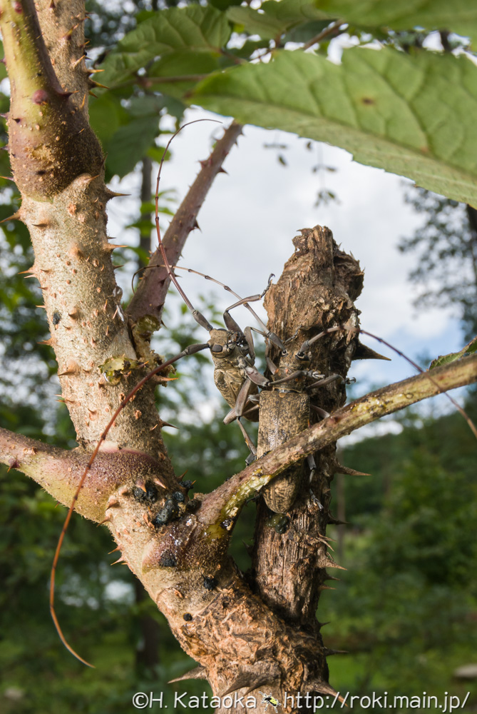 平地から山地にかけて普通に見られ、ハリギリ(センノキ)・ヤツデ・タラノキ等のウコギ科植物の生木に集まり、若枝や葉柄を後食するほか、それらの新鮮な伐採木や倒木に飛来する事もある。夜間、灯りにも飛来する。特に若い木を好み、高さが2メートルにも満たないような幼木に複数個体が集まっている事も珍しくない。警戒心が高く、不用意に近づくとポロッと落下したり、すぐに飛んで逃げてしまうので、本種のホスト植物を見つけたら、まずは遠巻きに探してみると良い。若い木を蹴飛ばすとクワガタのように落ちて来る事もあるが、地面に落ちた本種を見つけるのはなかなか難しい。