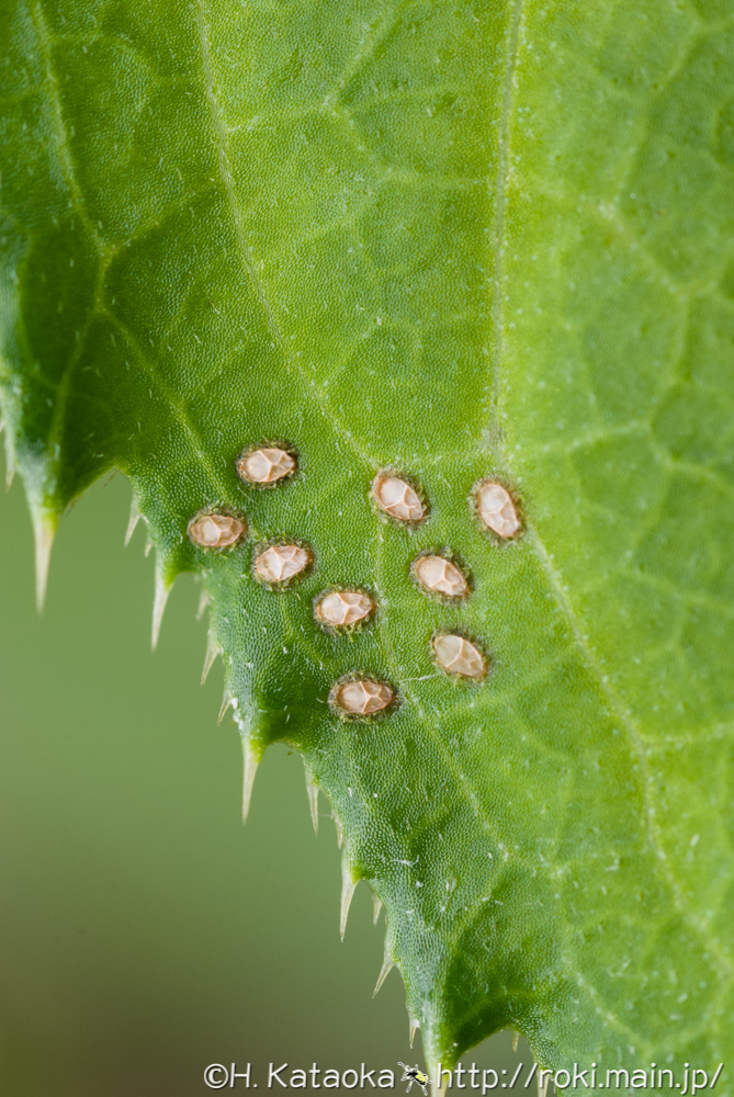 1.アザミ類の葉上の個体 2008.06 神奈川県
