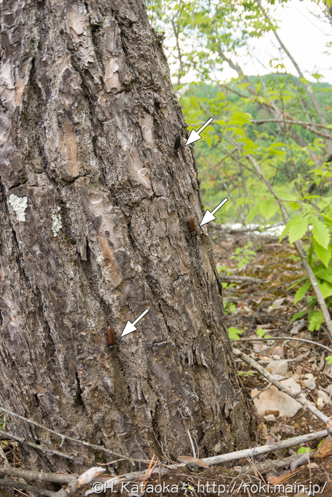 主に山地で普通に見られ、個体数も多い。クロマツ・アカマツ・エゾマツ・カラマツ・モミ・トウヒ・スギ等、各種針葉樹の伐採木や衰弱木に集まり、交尾・産卵する。頭を下にして、お尻を持ち上げている独特の姿勢で静止(コーリング?)している事が多い。上翅の色彩は黒色と褐色の2タイプがある。昼行性。
