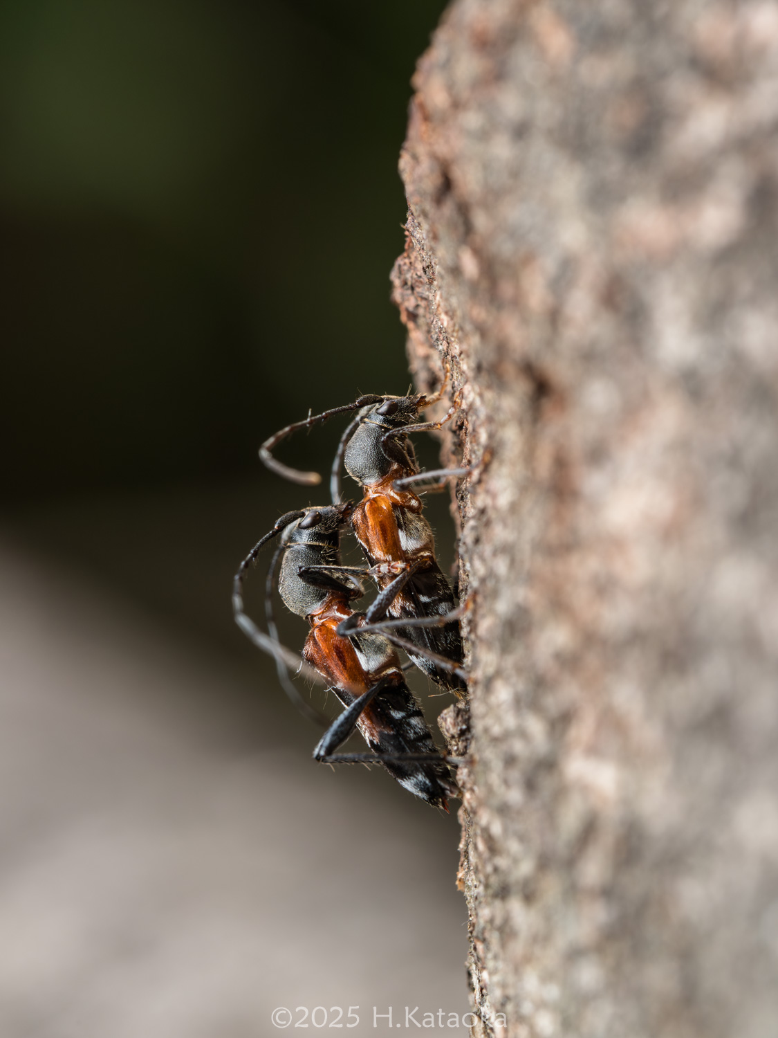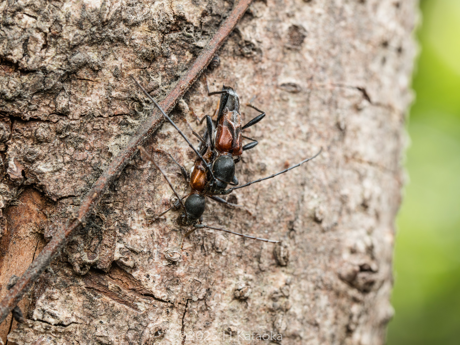 平地~山地で普通に見られ、モミ・シラカシ・スダジイ・ケヤキ・ツルウメモドキ等の伐採木や倒木に集まり、交尾・産卵するほか、カエデ・コゴメウツギ・エゴノキ・ミヤマガマズミ等の花にも集まる。