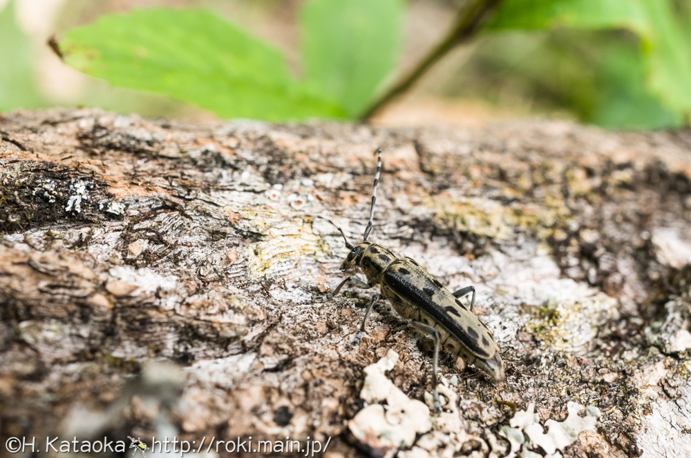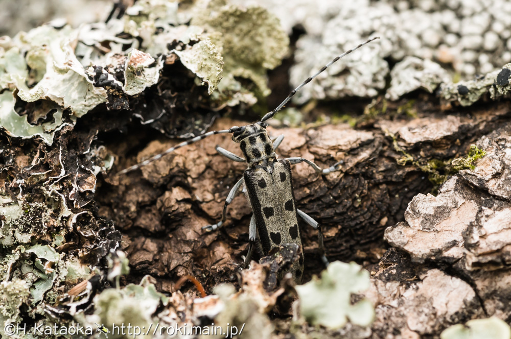 来た道を引き返し、巨大なドロノキの倒木のところまで戻って来ると、そこにはまだ虫屋さんと思しき人の姿。しかし、どうにも気になるので少しだけ倒木を見させてもらう事にした。参考までにトホシカミキリが飛来する倒木の状態だけでも見ておこうと思ったのだ。しかし、次の瞬間Nさんが声を上げた!「いた!産卵してる!」慌ててNさんのところに駆け寄ると、そこには紛れもなくトホシカミキリの姿が!こうして運良くもトホシカミキリを撮影する事が出来たのである。