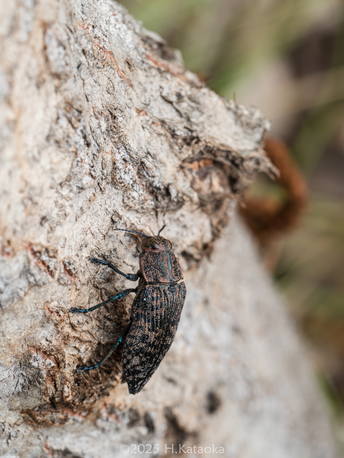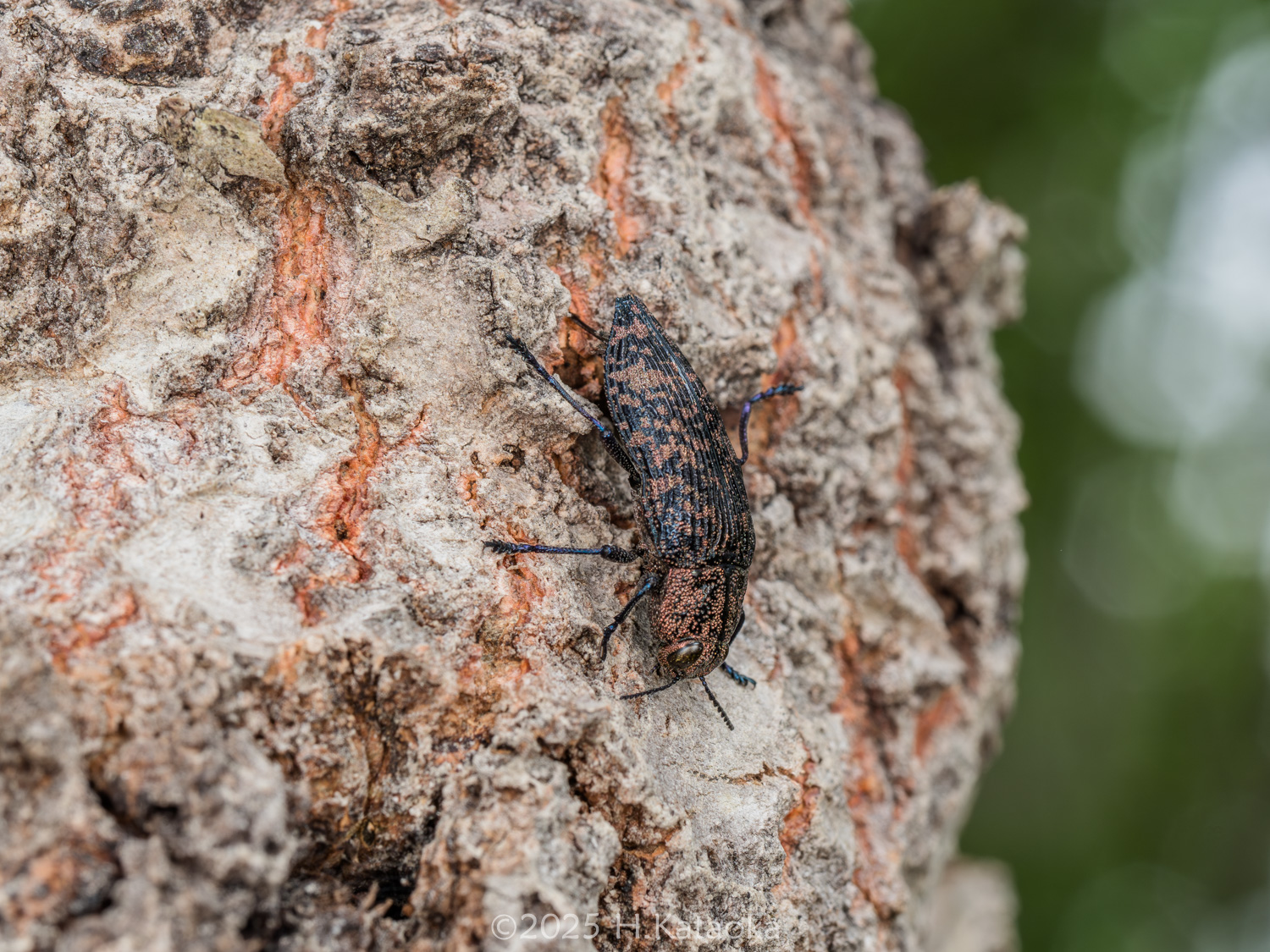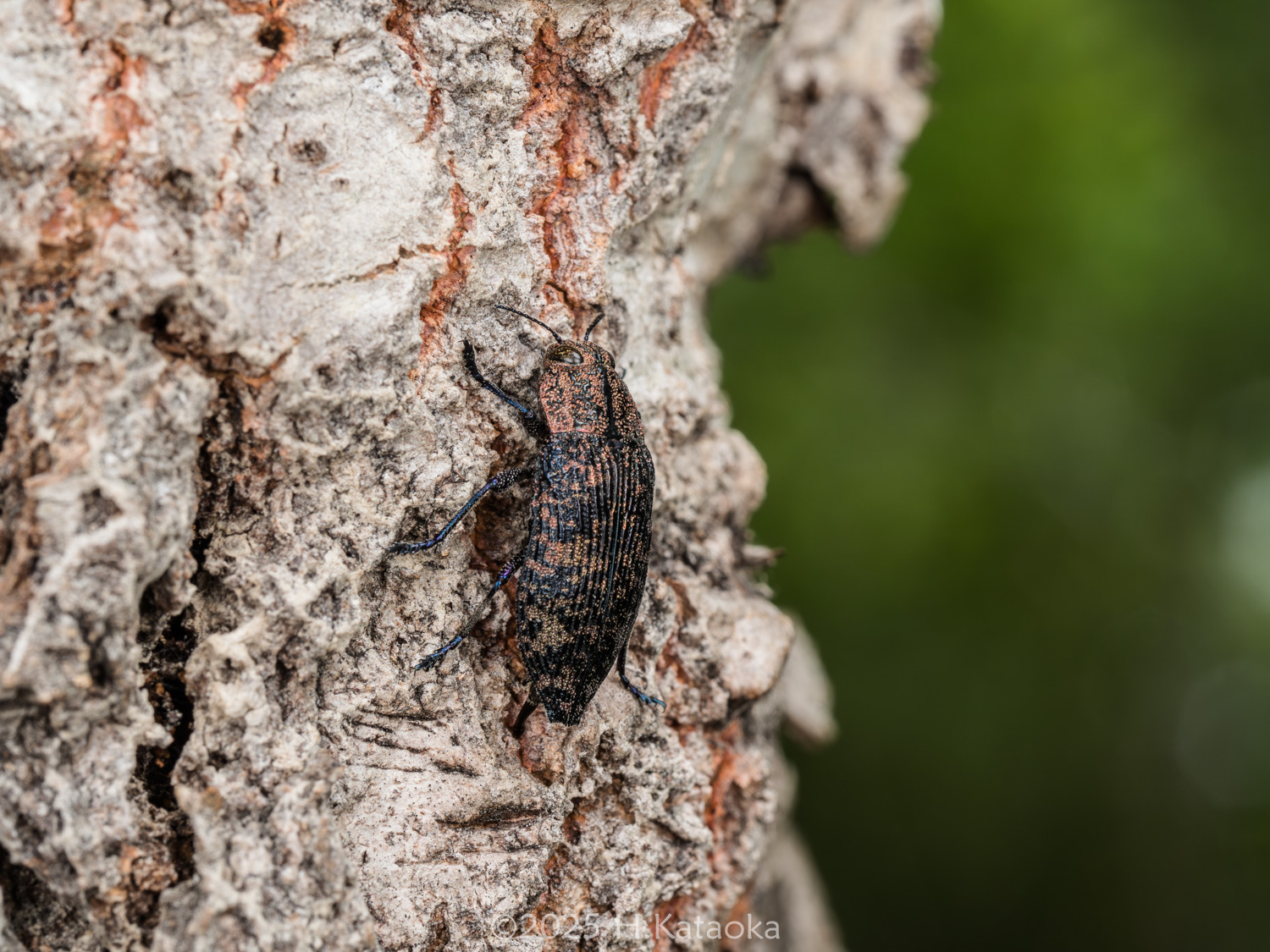 一見地味だが、よく見ると複雑な模様と色彩が美しい、いぶし銀のタマムシ。ドロノキ・ヤマナラシ等の衰弱木や衰弱部に集まり、交尾・産卵するほか、それらの葉を後食する。かつては大変珍しい稀種とされていたが、1994年に岡山県の造成地に生えるヤマナラシで多数発生しているのが発見され、生態が解明された。生息地ではヤマナラシの若木に多くの個体が見られ、その樹幹には本種の羽脱孔が多数確認できるほか、幹の直径が40㎝以上になるまで成長した木の衰弱部などにも羽脱孔が確認できる。