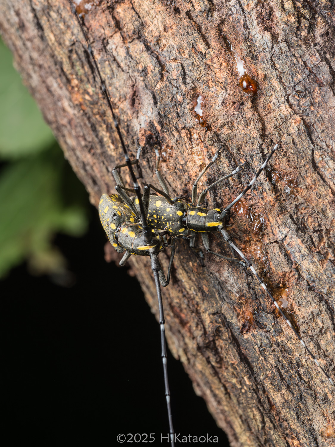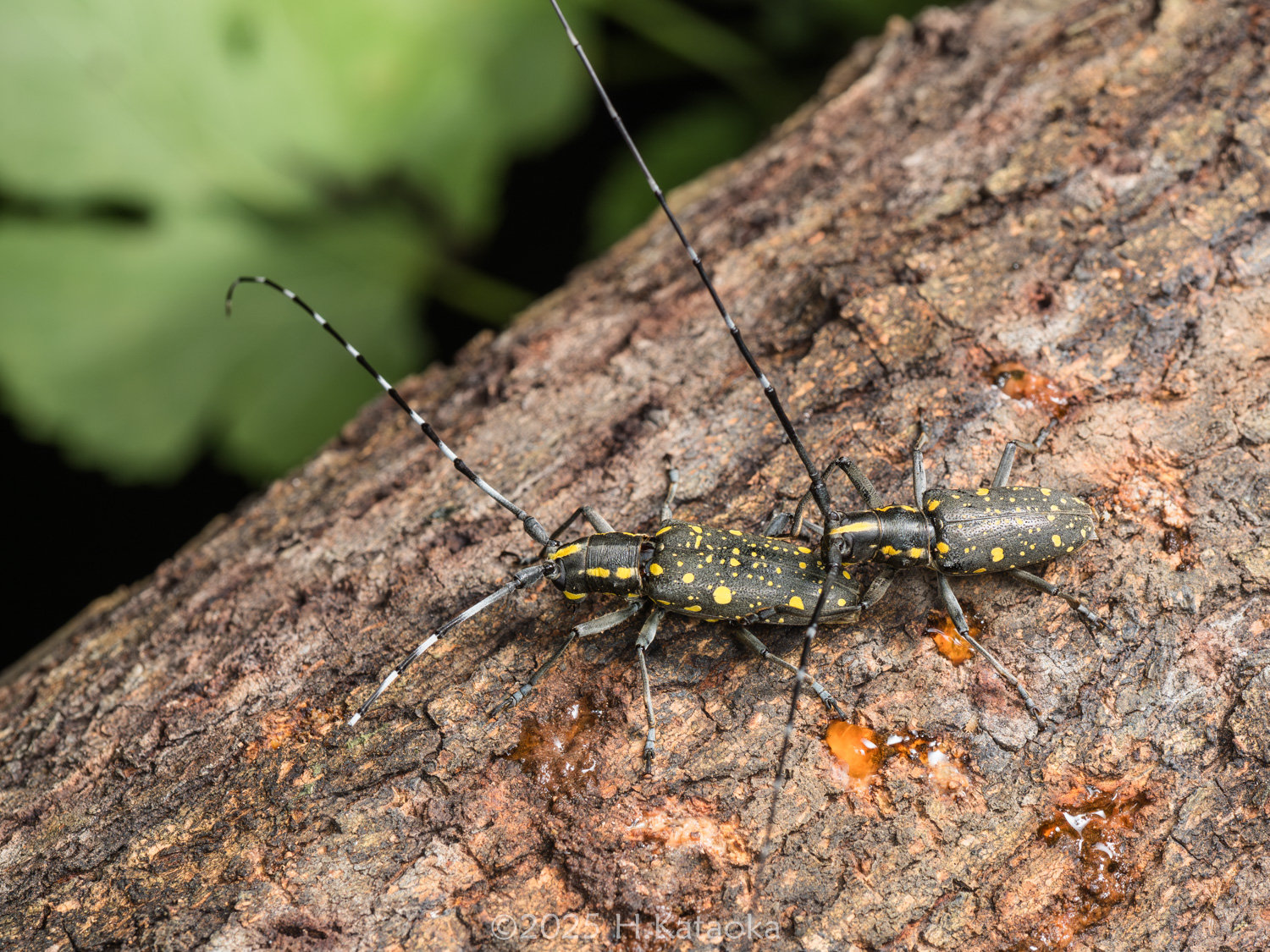 平地~山地でごく普通に見られるお馴染みのカミキリムシ。市街地の公園や緑地にも生息し、しばしば大発生している事がある。イチジク・クワ・アコウ・イヌビワ・ガジュマル等のクワ科植物の生木に集まり、葉を裏側から後食して大きな穴を開けるほか、それらの衰弱木にも集まり、そこに産卵する。夜間、灯りにも飛来する。島ごとの変異に富み、10亜種に分類されている。本州に生息するものは中国及び台湾からの移入種と考えられている。