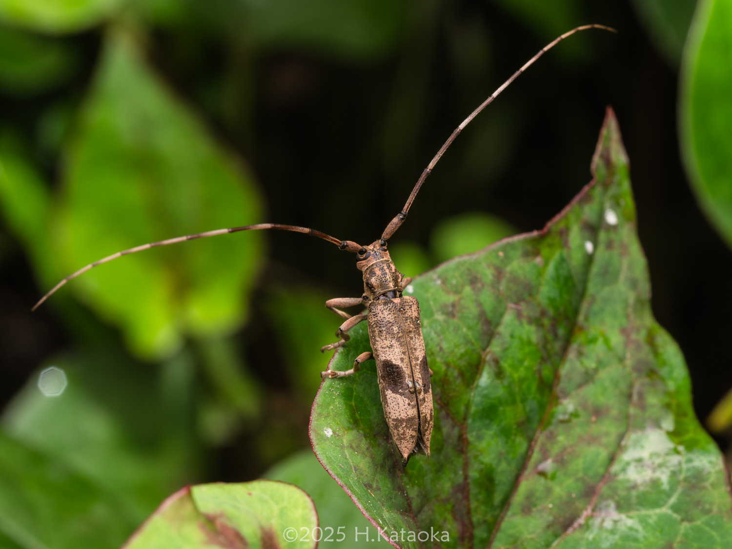 平地~山地で普通に見られる中型のカミキリムシ。アベマキ・クリ・ツクバネガシ・イチジク・カクレミノ・ネム・サクラ等の各種広葉樹の折れた枝や粗朶などに見られる。日中は枯葉に静止していたり、丸まった枯葉の中などに潜んでおり、日没後、それらの枯葉や樹皮を後食する。夜間、明かりにも飛来する。
