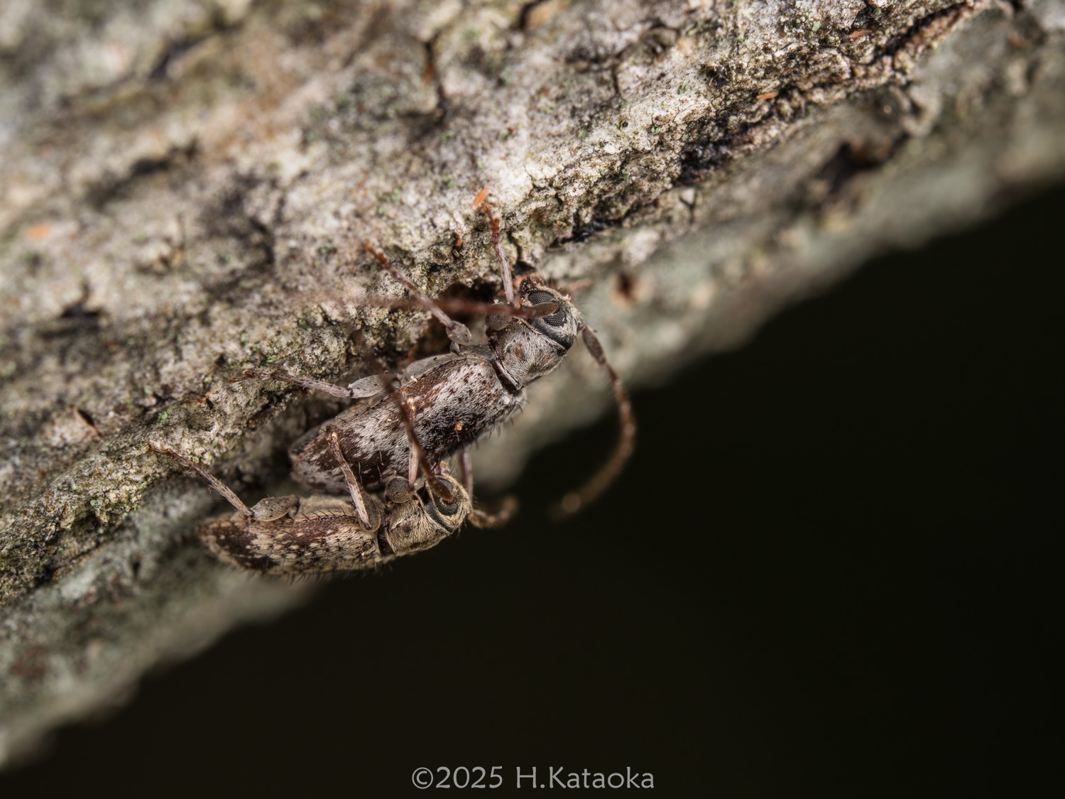 体長5㎜程の小さなカミキリムシ。アカメガシワ・ケヤキ・ニガキ・ハルニレ等の各種広葉樹の枯れ枝・粗朶、フジ等の枯づる等に見られる。夜間、明かりにも飛来する。